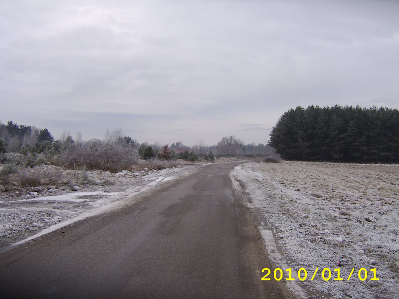 Droga była pokryta takimi drobinkami lodu i pod kątem. W dodatku naokoło jest las. Pewnie będzie tu dużo wypadków bo jak mnie rowerem ściągało to co dopiero furą jak będą tu zasuwali ponad 100 km/h