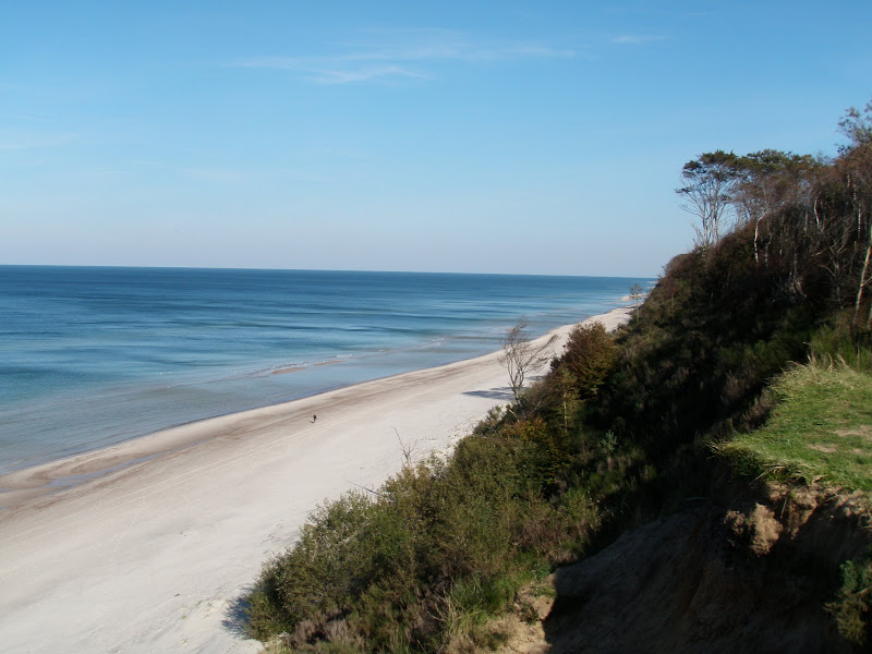 Rano zimno niecałe 9C + dodatkowo ostry wiatr z południa. Więc jak wieje z południa to jedziemy na północ a potem wracamy chowając się po lasach z powrotem na południe :) Na północy mam morze więc jadę do Słowińskiego Parku Narodowego.Najpierw na Jezioro Gardna