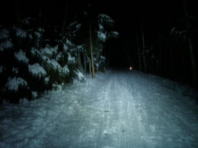 Nie zdążyłem jeszcze wyjść z pracy a było już ciemno. Pojechałem pokręcić się trochę po lesie, bo wiało strasznie na otwartej przestrzeni. W mieście pełno solanki rozlali i nawet przy bardzo niskiej temperaturze stoi woda ale za to w lasach wszytko pięknie ubite i zamarznięte. Szedłem jak burza, nawet na stojąco pod górkę po lodzie nie zrywałem przyczepności. Chyba ta ciemność dodawała mi adrenaliny. Dopiero jak miałem przejść do domu 300 metrów w spd-ach zdałem sobie sprawę jak bardzo jest ślisko.Dane wyjazdu: