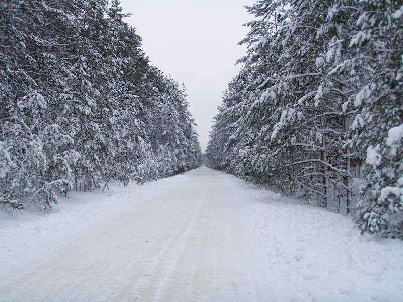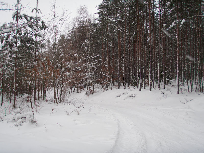 Zastanawiałem się czy dziś iść na biegówki czy na rower. Wybrałem rower, ale potem tego żałowałem. Po wczorajszym opadach śniegu warunki pod biegówki były idealne czego nie można powiedzieć o rowerze. Okropnie koło mi buksowało i zapadało się w miękkim śniegu. Tylko przy bardzo szybkiej jeździe ponad 25 km/h nie było tego efektu, ale ciągnęło to tyle energii i mogłem jechać tylko nielicznymi sprintami. Dawno tak marnej średniej nie miałem.W lasach znajdzie się zawsze jakiś idiota co postanawia jeździć blachosmrodem. Przez długi kawałek czasu ciągnął się za mną, bo nie miałem ochoty i możliwości jak go przepuścić bez zatrzymywania.
