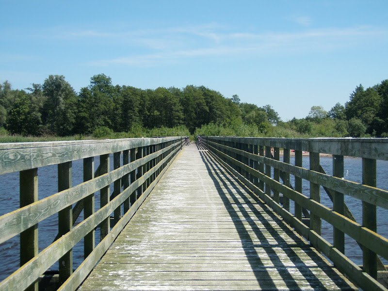 Pomost dopiero odnajduję jak jechałem wałem wzdłuż rzeki Łeby do ujścia do jeziora. W sumie bardzo fajny pomost ale nieźle ukryty do samego końca go nie widać